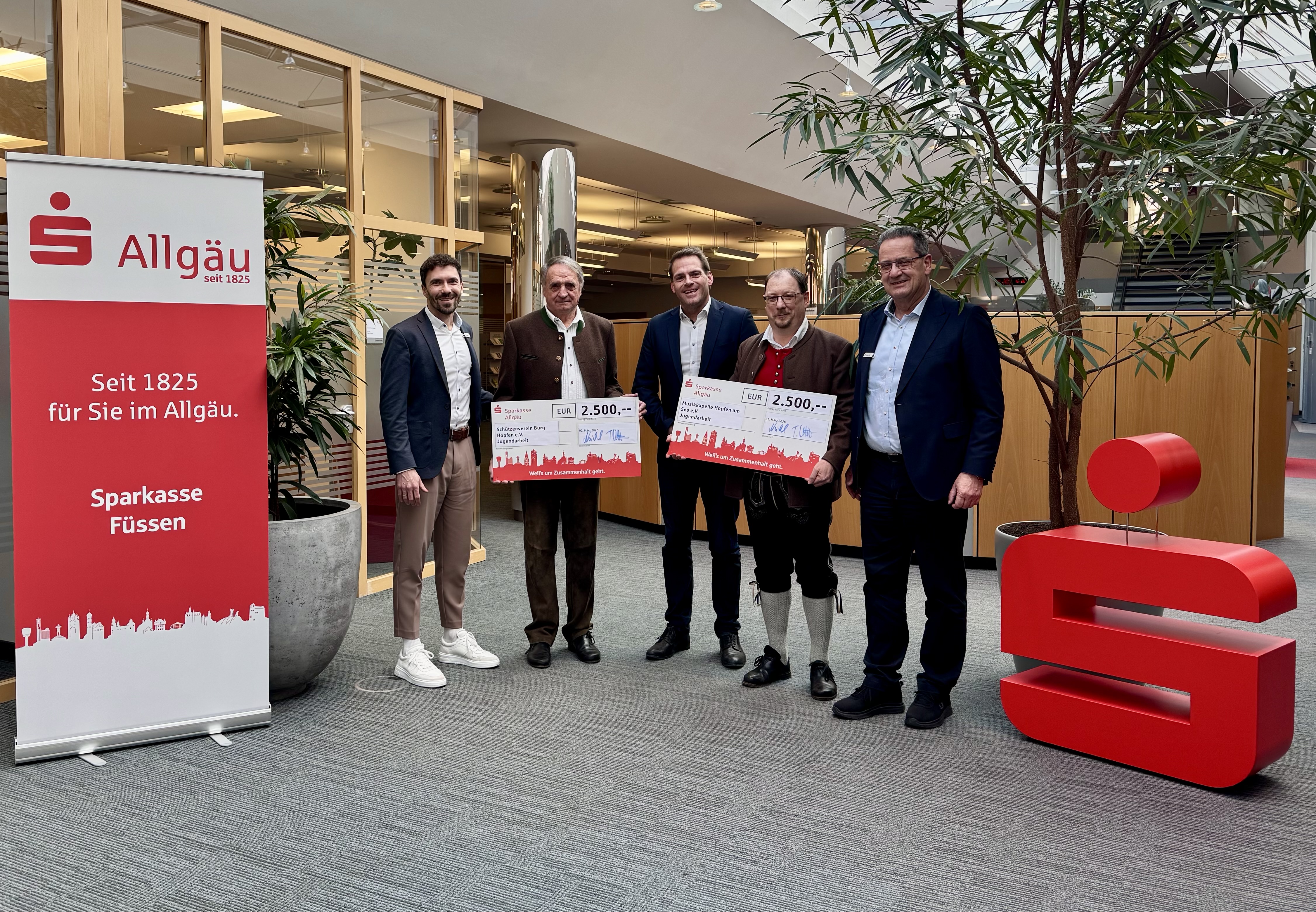 , Nina HammererFüssen, 02. März 2026 – Die Sparkasse Allgäu hat jeweils 2.500 Euro an den Schützenverein Burg Hopfen und die Musikkapelle Hopfen am See e.V. überreicht. Diese Spenden sind speziell für die Jugendarbeit der beiden Vereine vorgesehen.