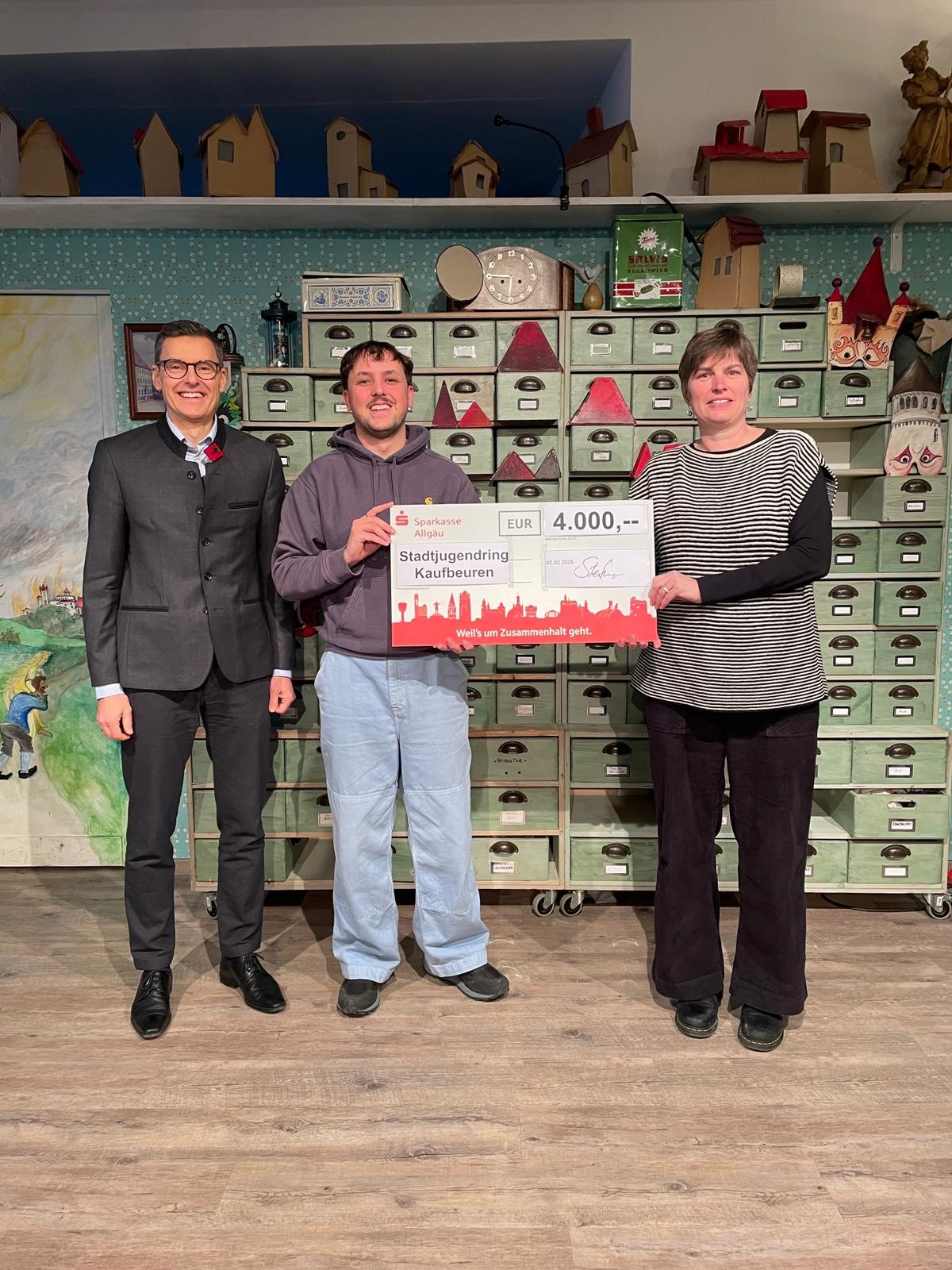 , Julia HaldKaufbeuren, Februar 2026 – Im Rahmen der Jahresspende unterstützt die Sparkasse Allgäu erneut das JUMP-Projekt des Stadtjugendrings Kaufbeuren mit einem Betrag über 4.000 Euro. „Jugend mit Perspektive“, kurz JUMP, wurde vom Stadtjugendring 2012 ins Leben gerufen, um auch Kindern und Jugendlichen aus sozial schwachen und bildungsfernen Familien die Teilnahme an ihren Angeboten zu ermöglichen. In erster Linie werde den Kindern getreu dem Motto „Theater für alle“ das Mitwirken in der Kulturwerkstatt mitfinanziert.