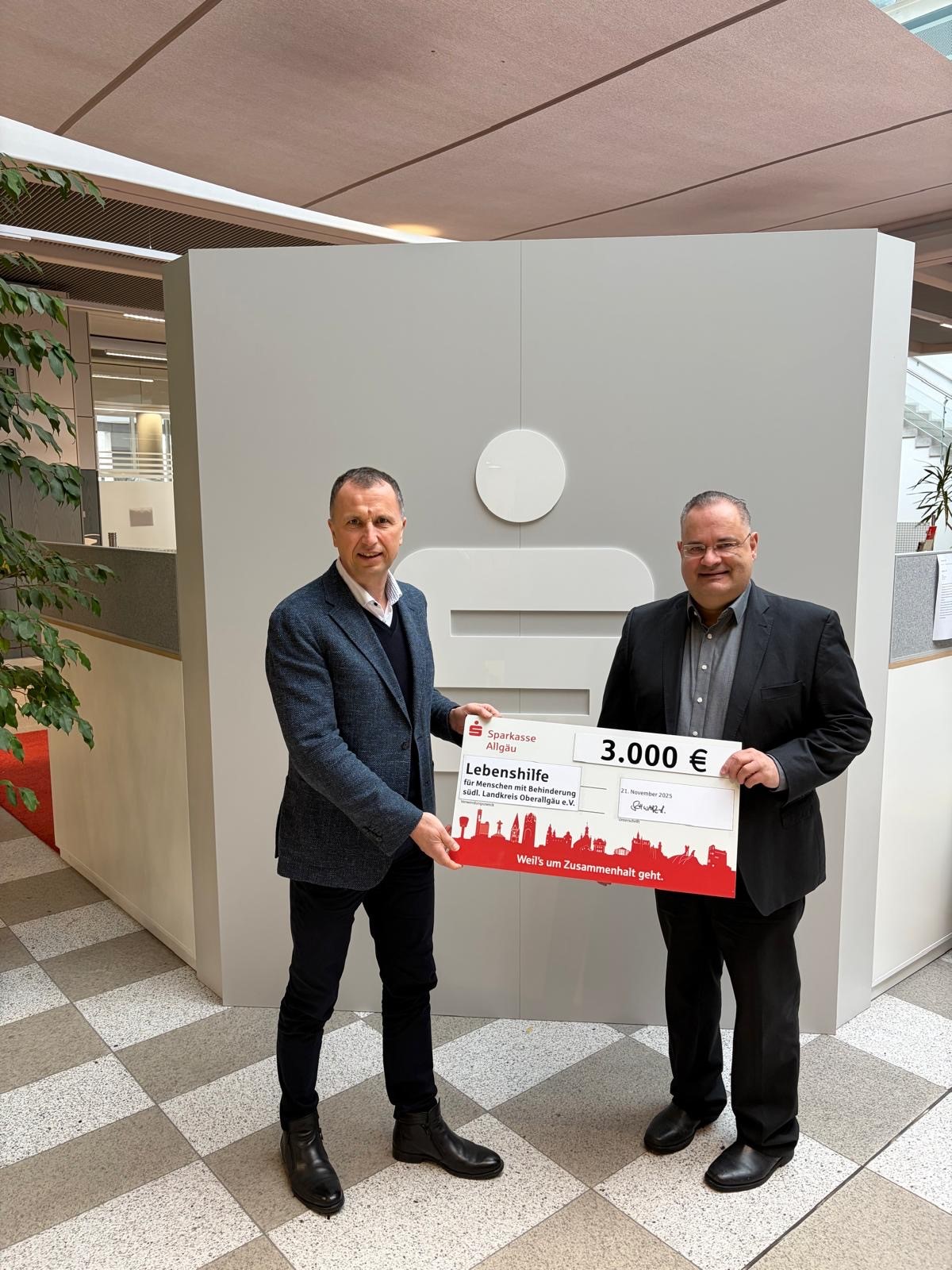, Nina HammererSonthofen, 21. November 2025 – Die Sparkasse Allgäu hat die Lebenshilfe südliches Oberallgäu mit einer Spende von 3.000 Euro für den Bau eines Brunnens am neuen Objekt in Sonthofen unterstützt.