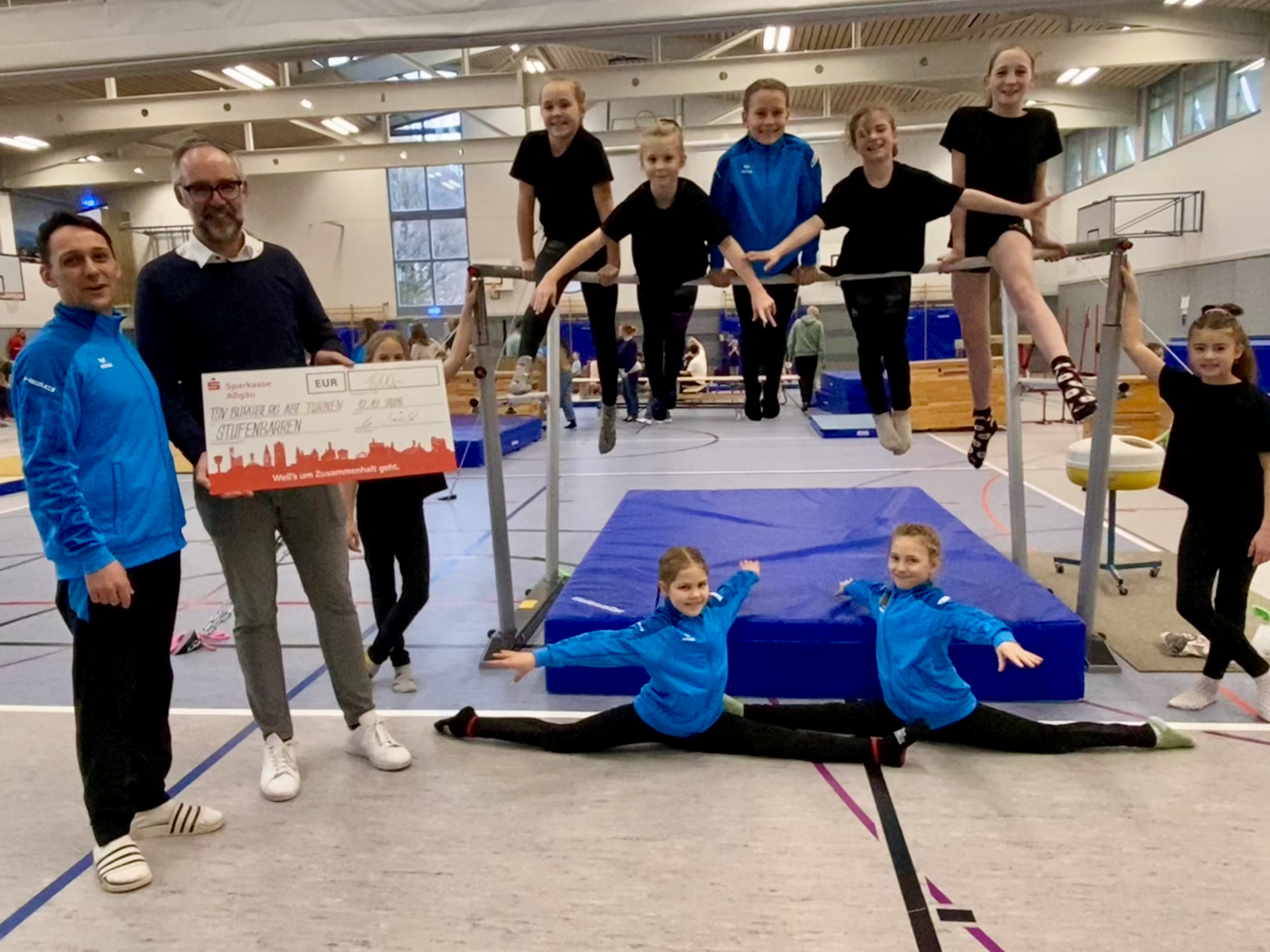 , Nina HammererBurgberg, 12. Dezember 2025 – Christian Böck, Marktbereichsleiter der Sparkasse Allgäu, übergab eine Spende in Höhe von 1.000 Euro an den TSV Burgberg. Die Spende wird für die Anschaffung eines neuen Stufenbarrens verwendet, der künftig das Training der Turnerinnen und Turner des Vereins bereichern wird.