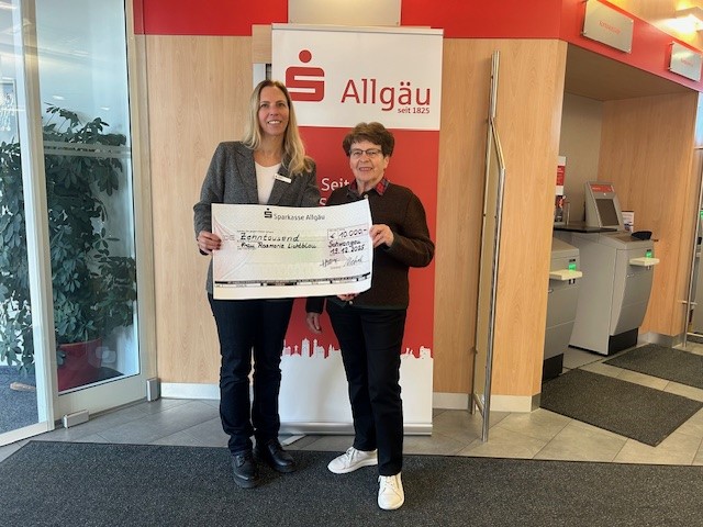 , Julia HaldKempten, im Januar 2026 – Wieder einmal hat eine Kundin der Sparkasse Allgäu Glück gehabt: Rosmarie Lichtblau aus Trauchgau (Halblech) freut sich über einen Großgewinn in der PS-Lotterie. Seit Jahren nimmt Lichtblau bereits an den Auslosungen teil – im November 2025 folgt dann der Gewinn über 10.000 Euro. Mit dem Geld möchte sie gerne auf Reisen gehen, erzählt die langjährige Sparkassen-Kundin bei der symbolischen Preisübergabe mit Sparkassen-Beraterin Christine Mehrle in der Filiale Schwangau.